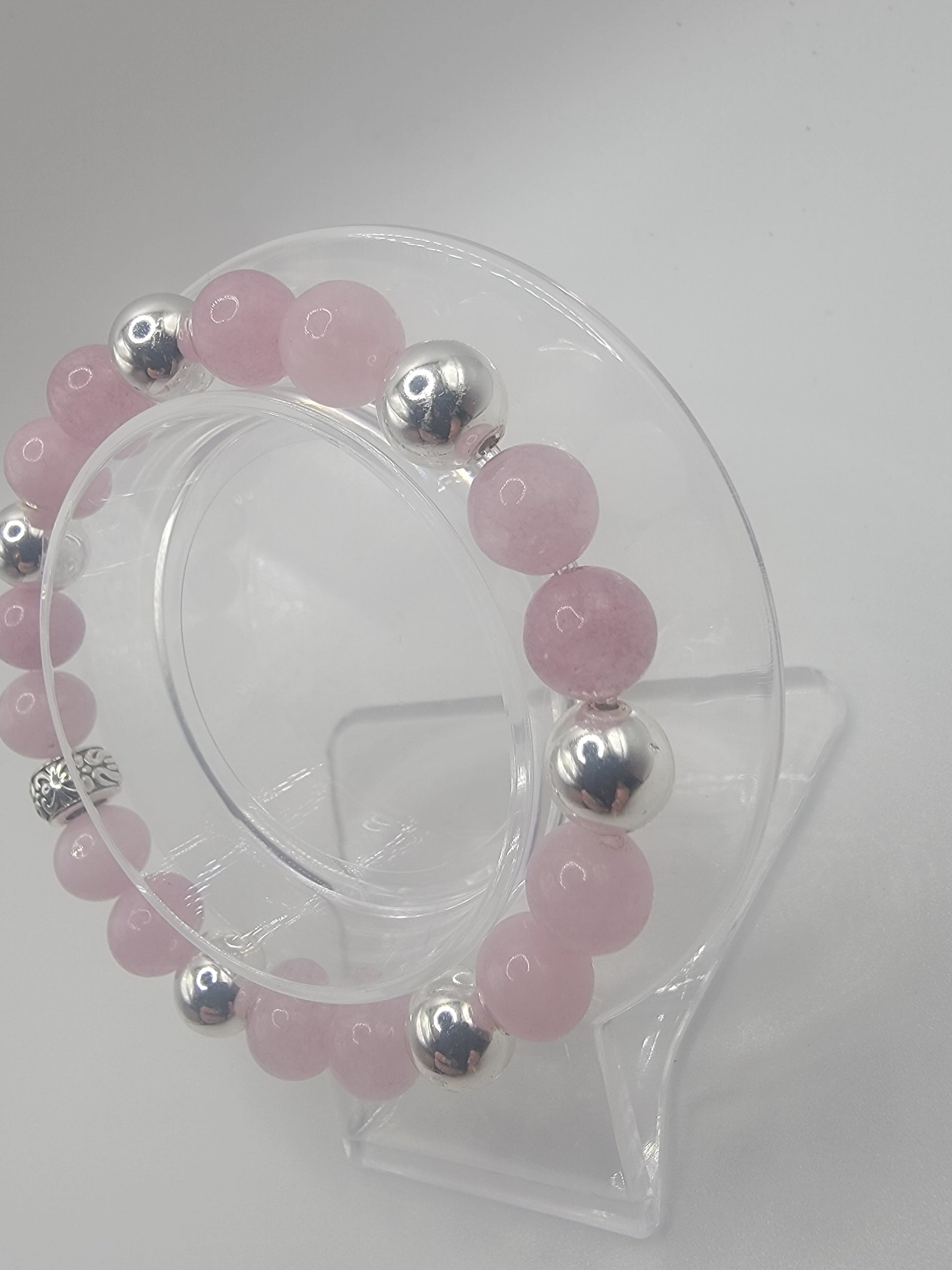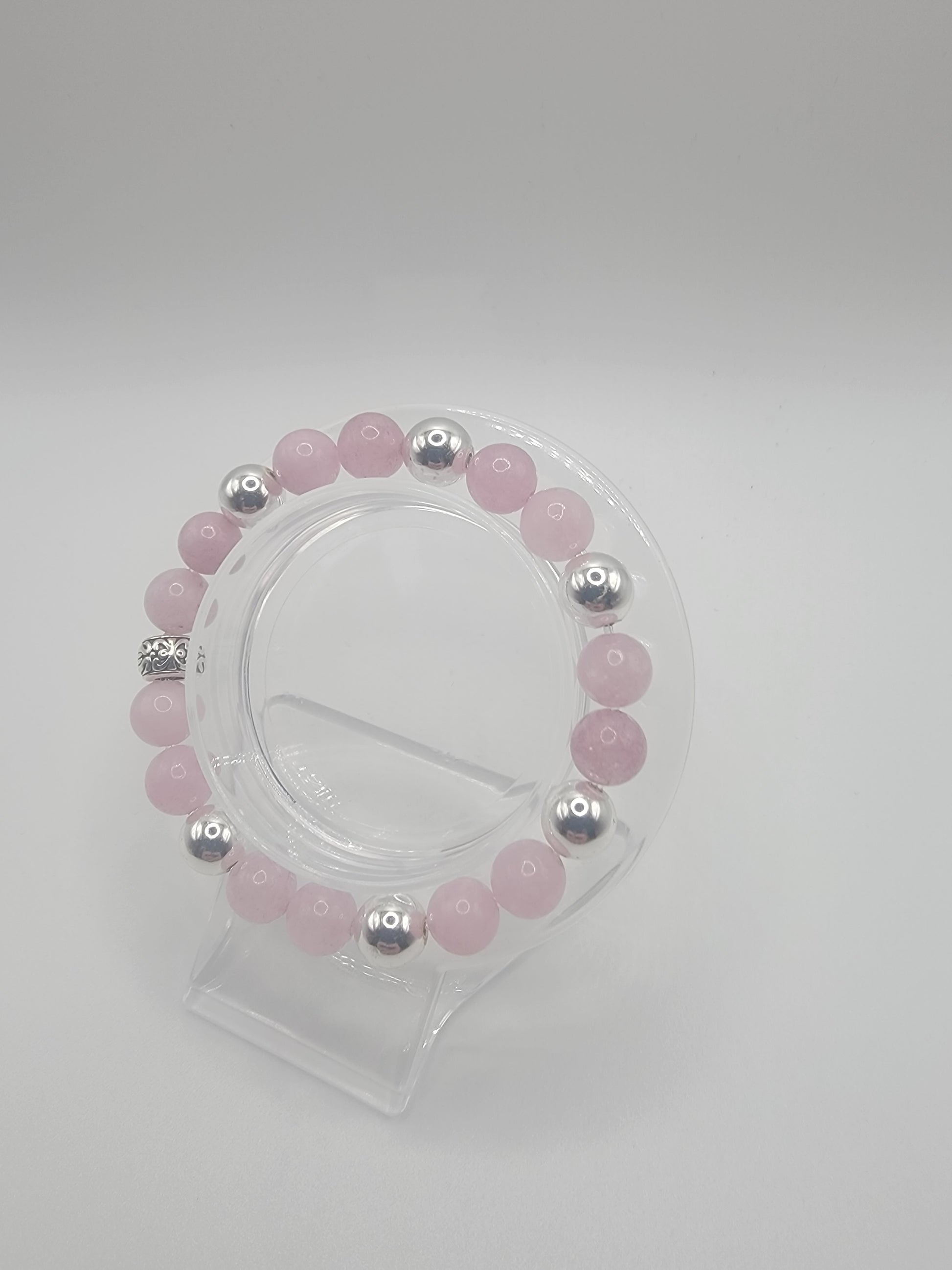 Kunzite Chalcedony and Silver Hematite Stretch Bracelet.
