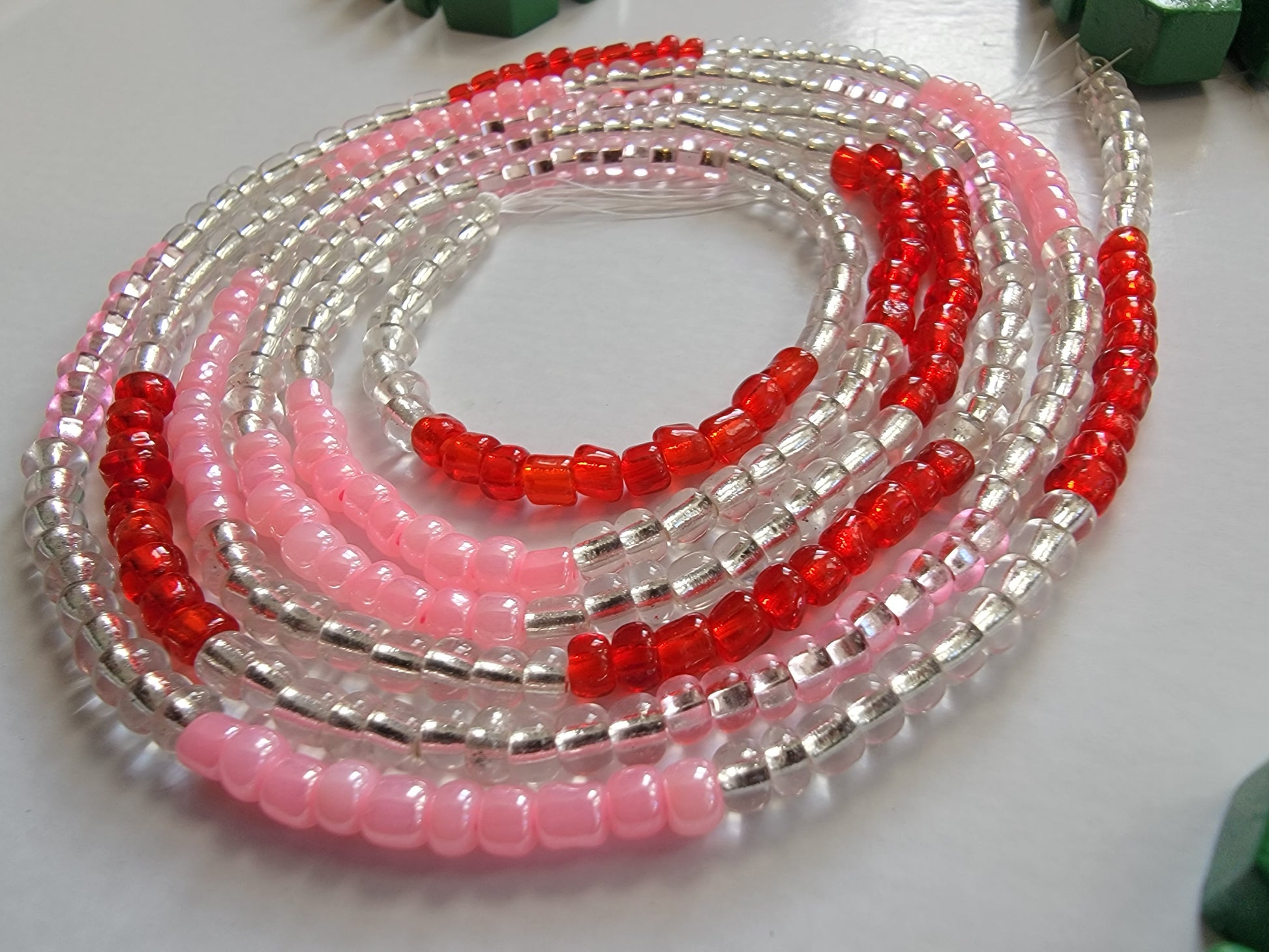 Sizing/Fit: size on your waist where comfortable, remove any excess beads, tie both ends together and trim thread