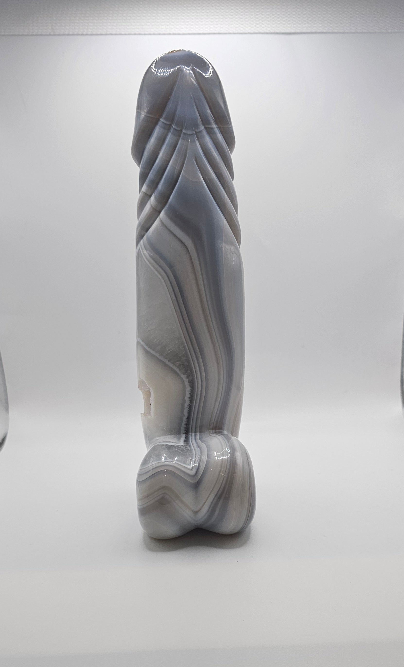 Beautiful agate penis carving with sparkly druzy at the base.