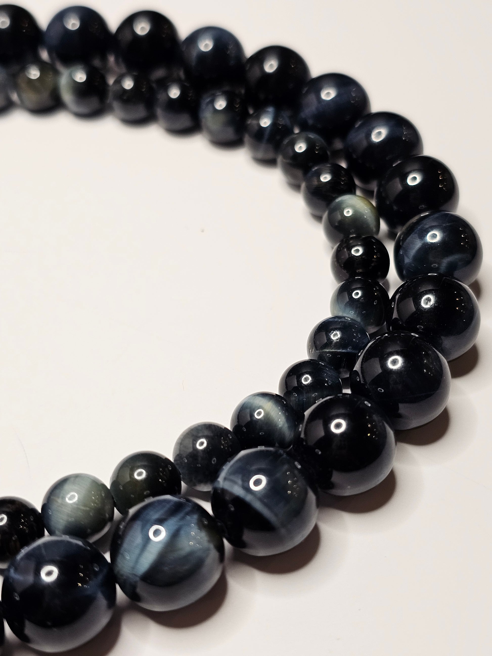 "Known for its unique blue color, Blue Tiger's Eye is a type of quartz with a mesmerizing chatoyancy effect. Crafted into elegant jewelry, it promotes confidence and courage while reducing stress and anxiety. With its soothing energy, it makes a great addition to any collection."