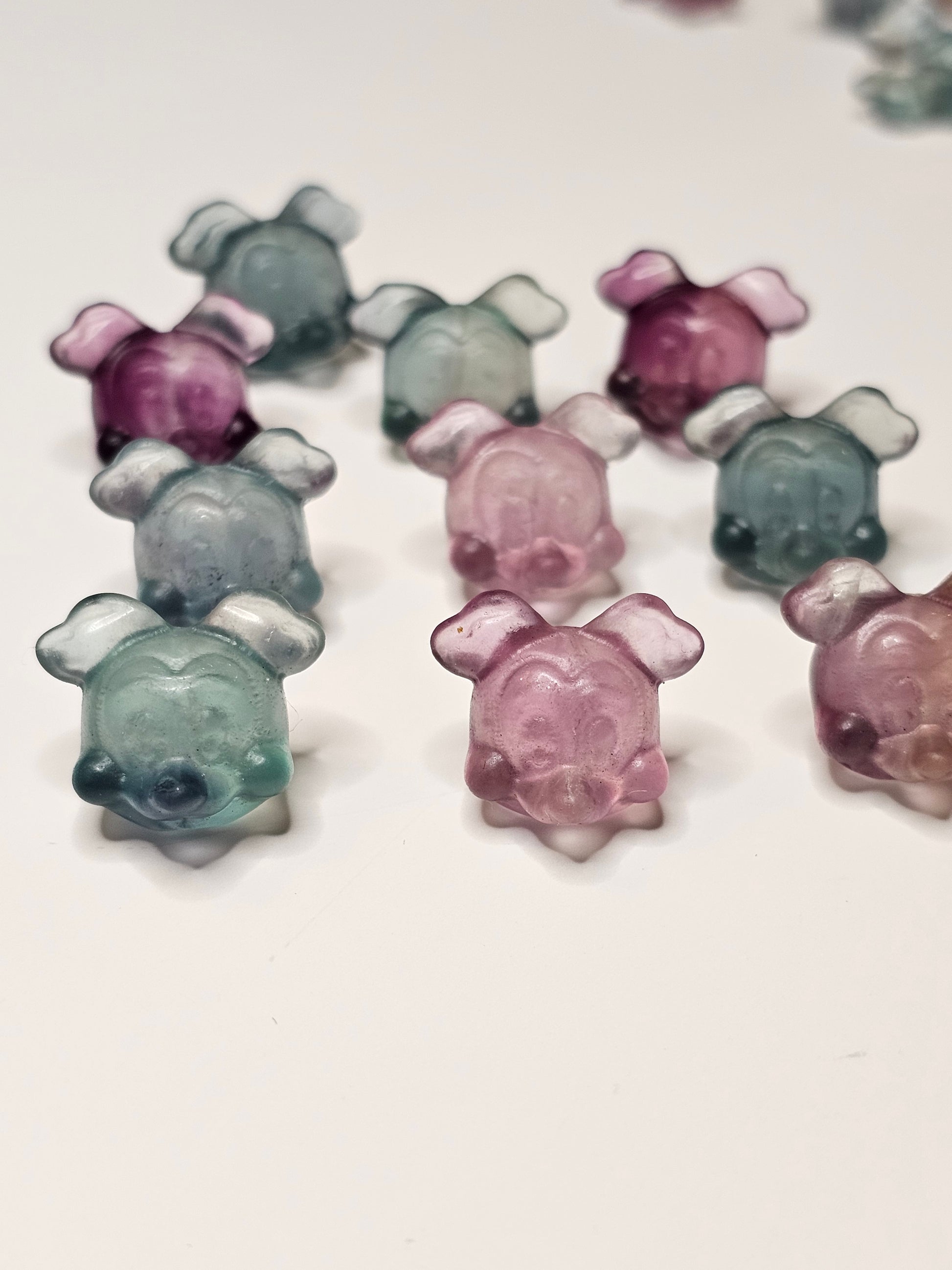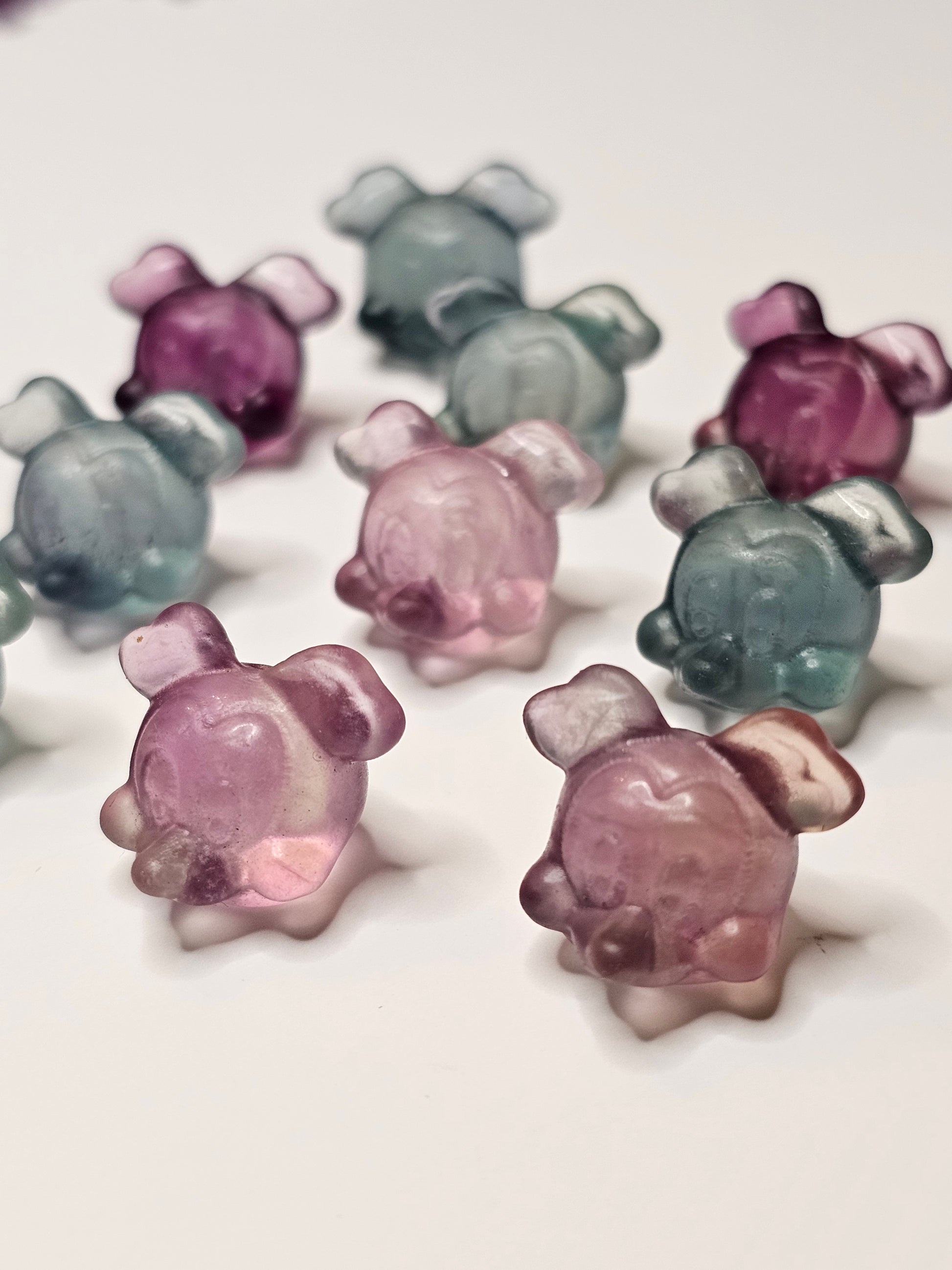 Add a touch of whimsy to your accessory game with our Boy Mouse Flourite Charm. This playful charm is crafted with beautiful flourite stones and features a charming little mouse design. Perfect for those who like to spice things up with a dash of quirkiness.