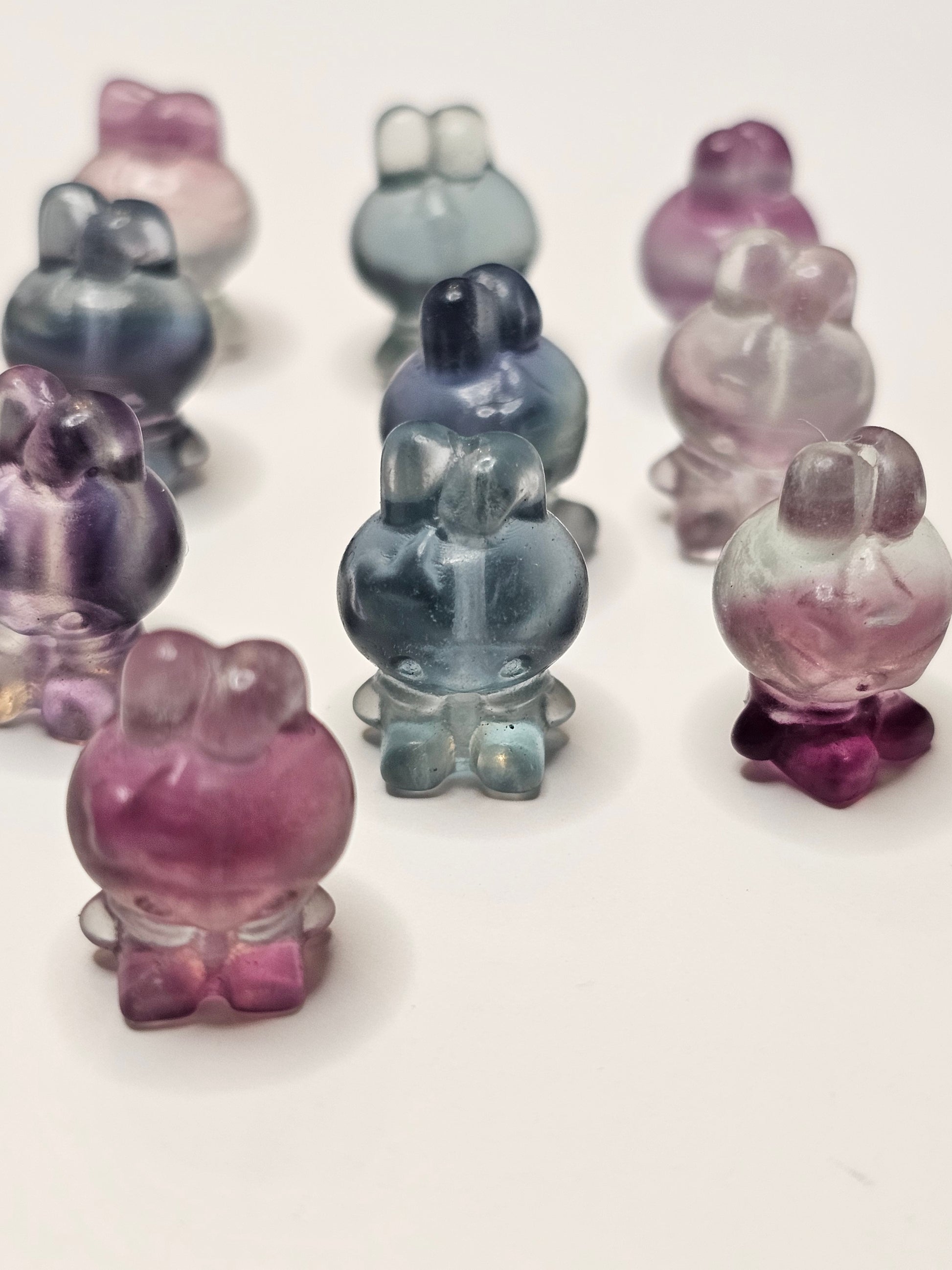 Add a little hop and color to your charm collection with the Bunny Flourite Charm! This quirky charm features a cute bunny design and is made with flourite, a gemstone known for its calming and balancing properties. A must-have for any charm collector or anyone in need of a little whimsy in their life!