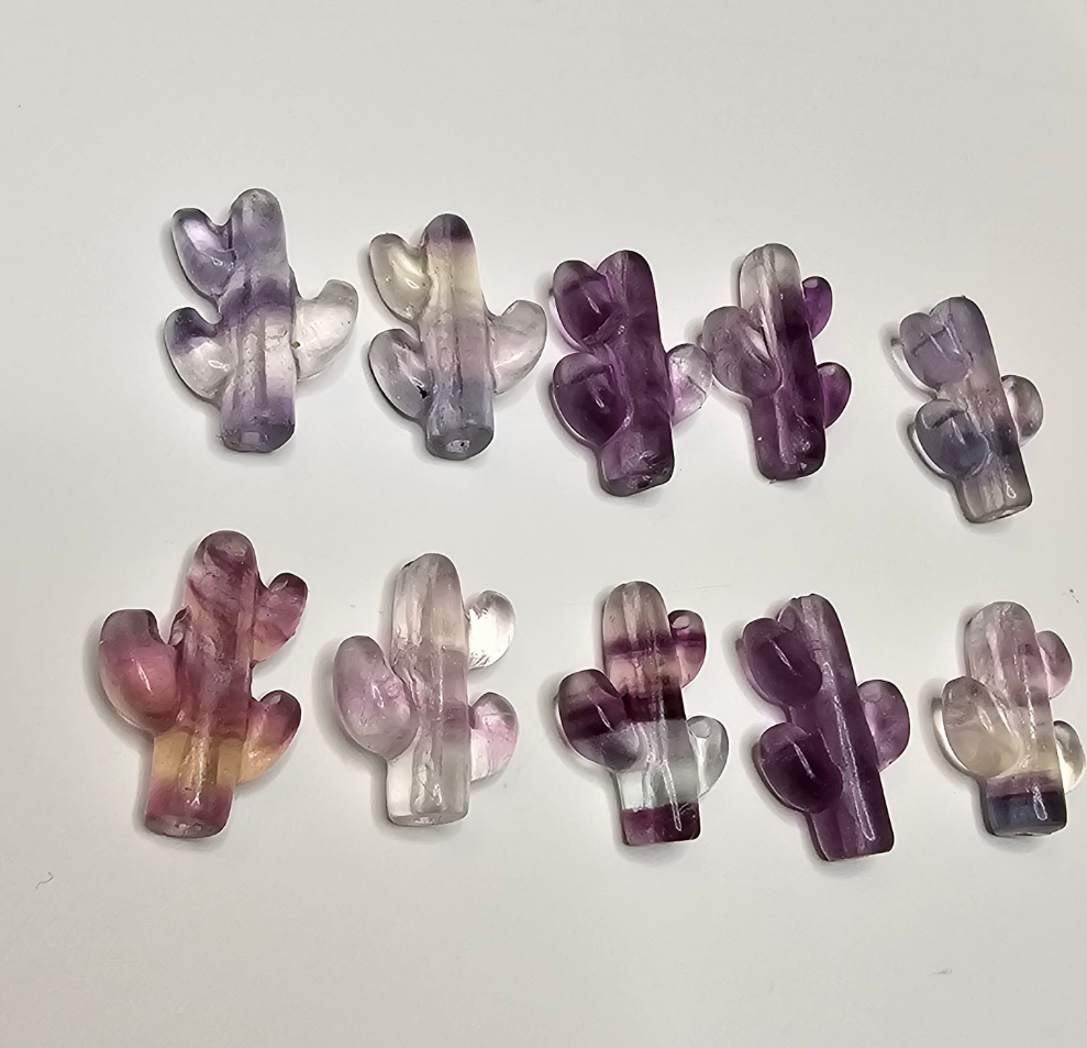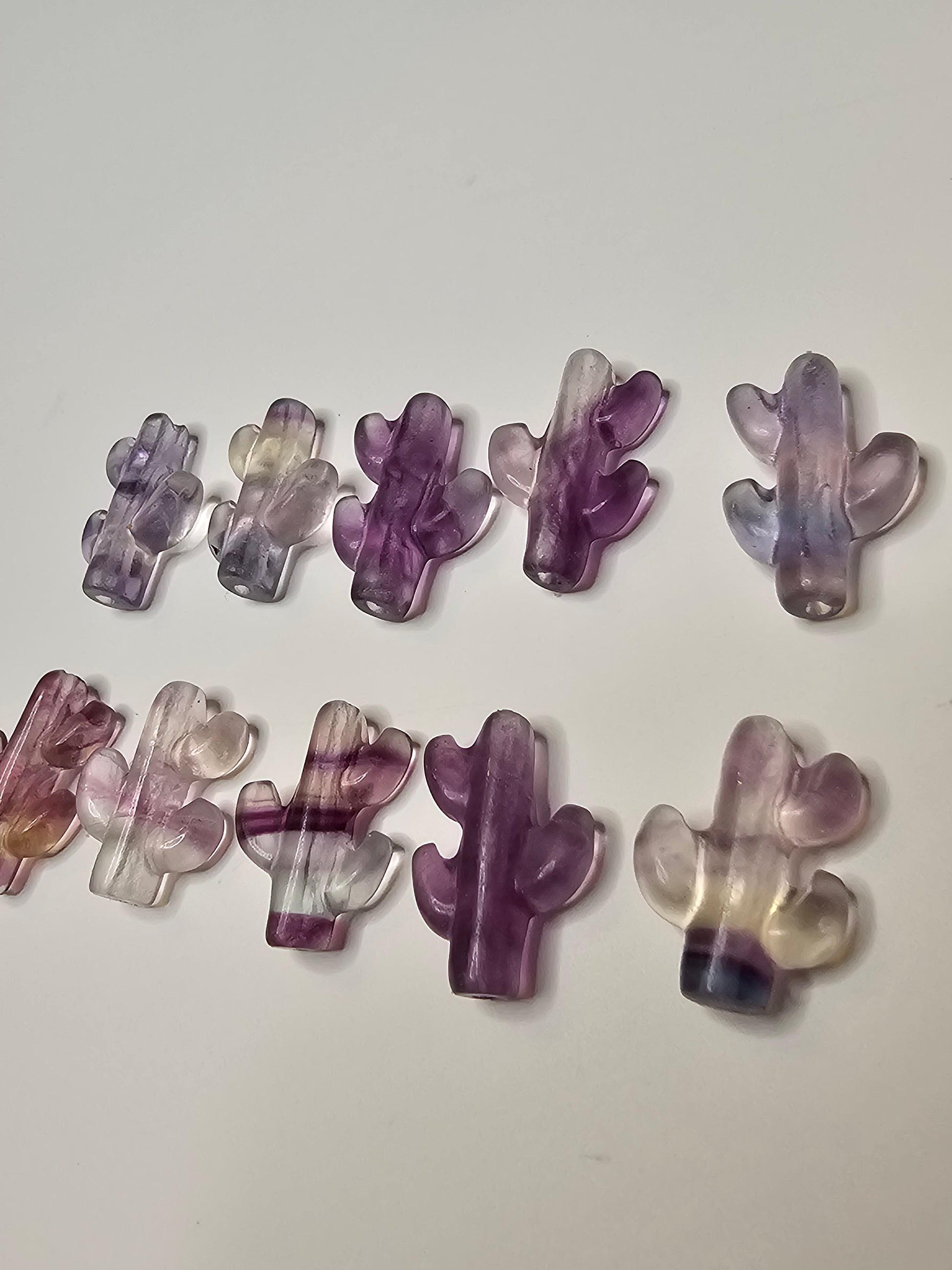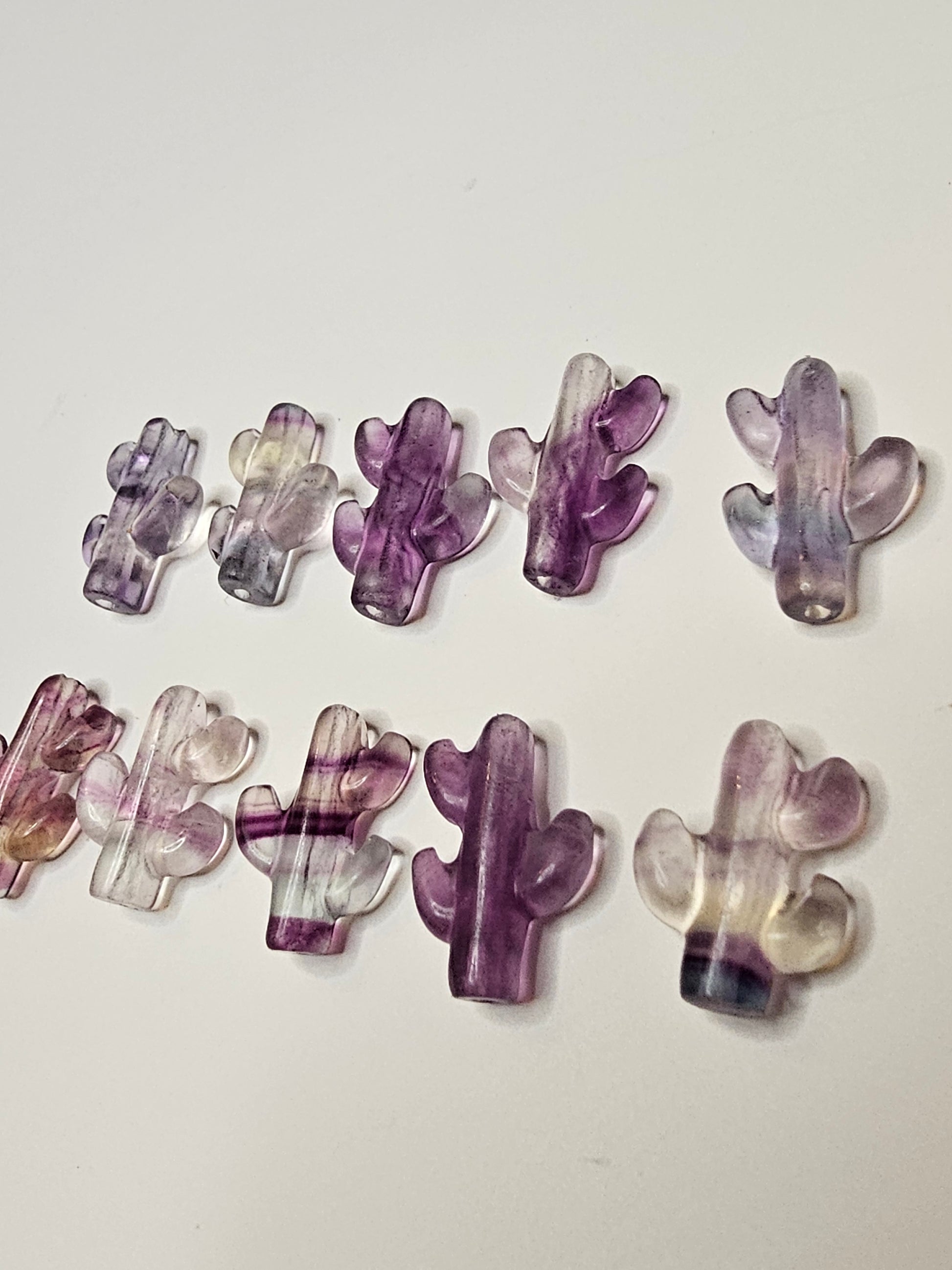 This cactus flourite charm will add some natural charm to your accessories! The unique flourite stone not only looks beautiful, but is believed to provide mental clarity and positivity. Perfect for someone who wants to stand out in a whimsical way!