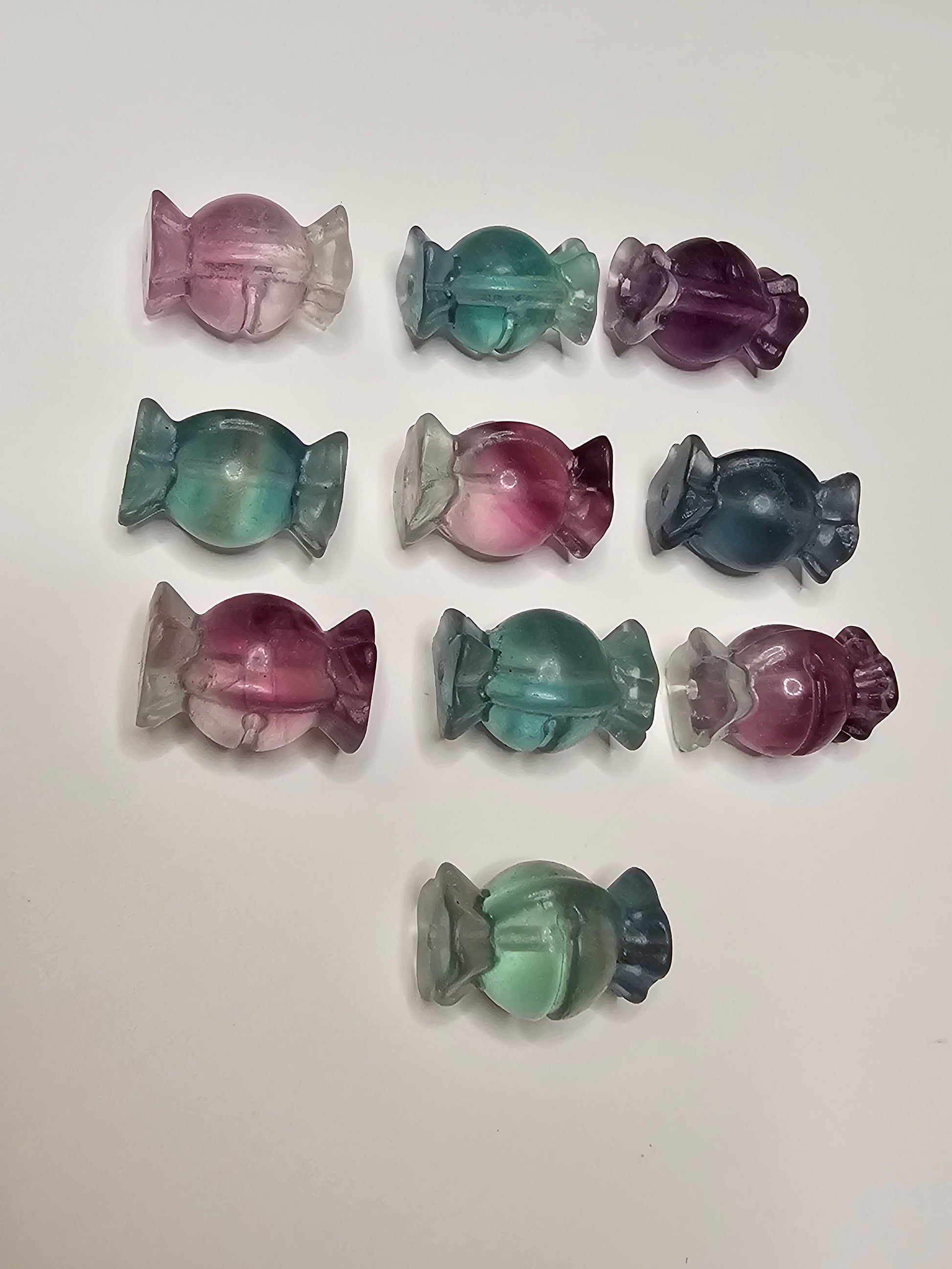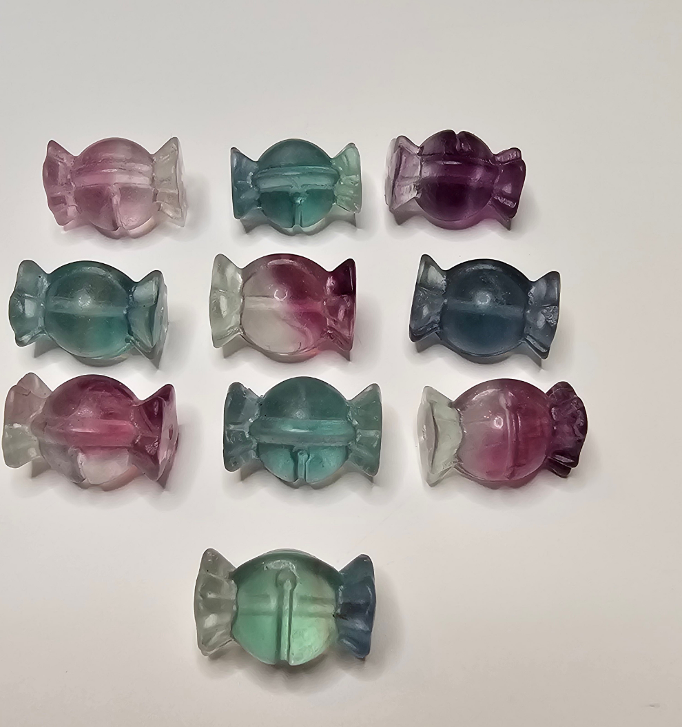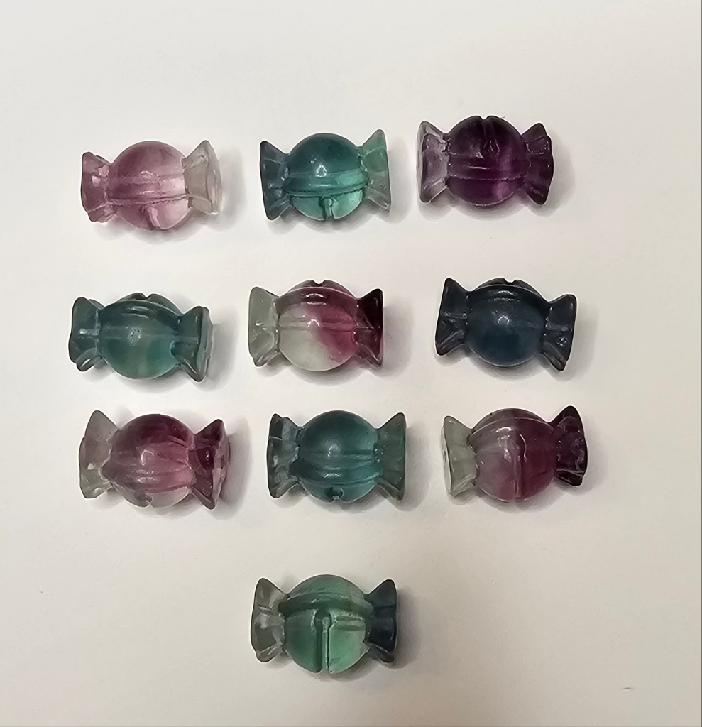 Add some sweet and playful vibes to your accessory collection with our Candy Flourite Charm. This unique charm features a colorful candy-inspired design made of flourite, giving off positive and uplifting energy. Perfect for adding a touch of quirkiness to any outfit. Get yours today!
