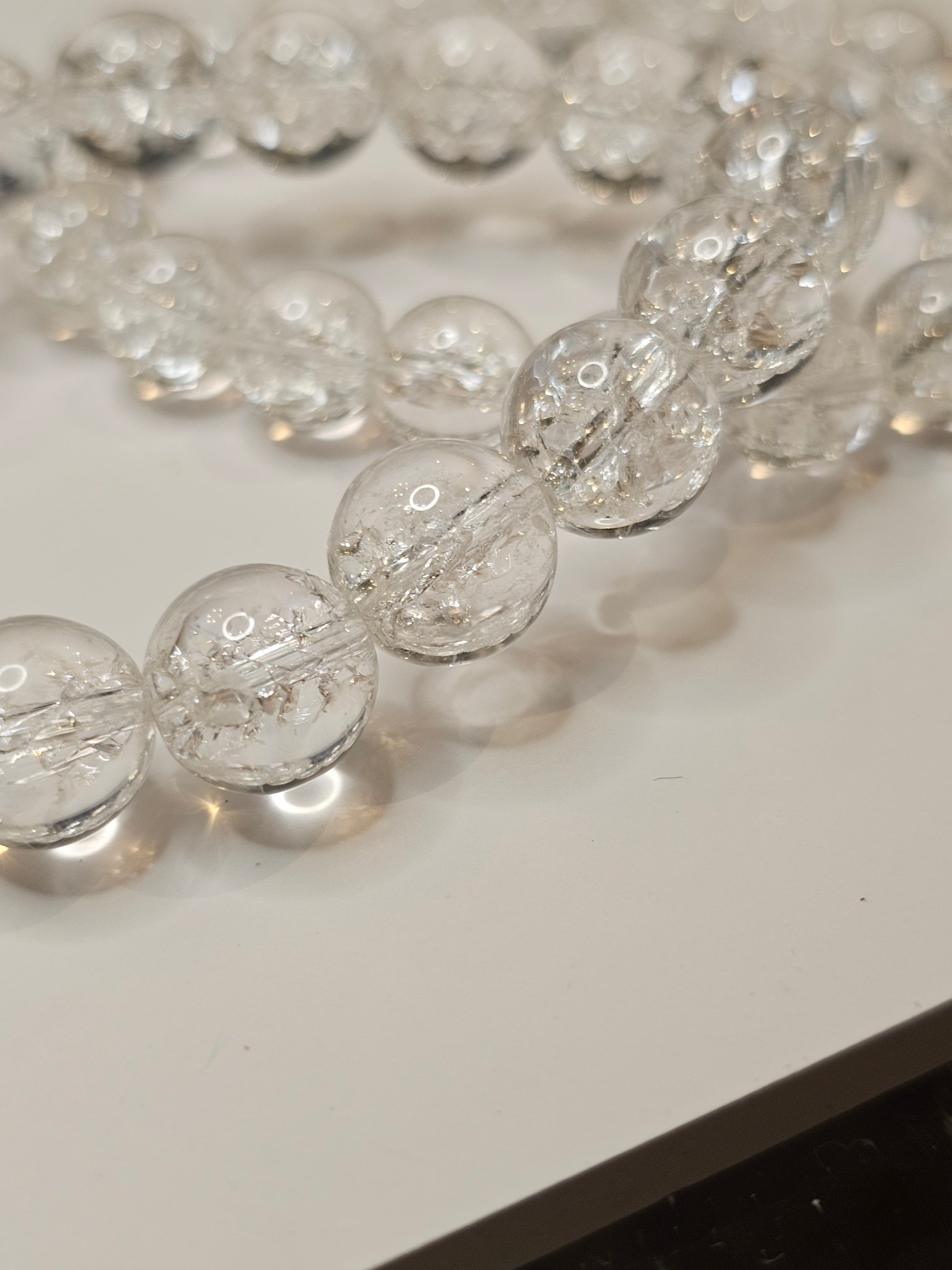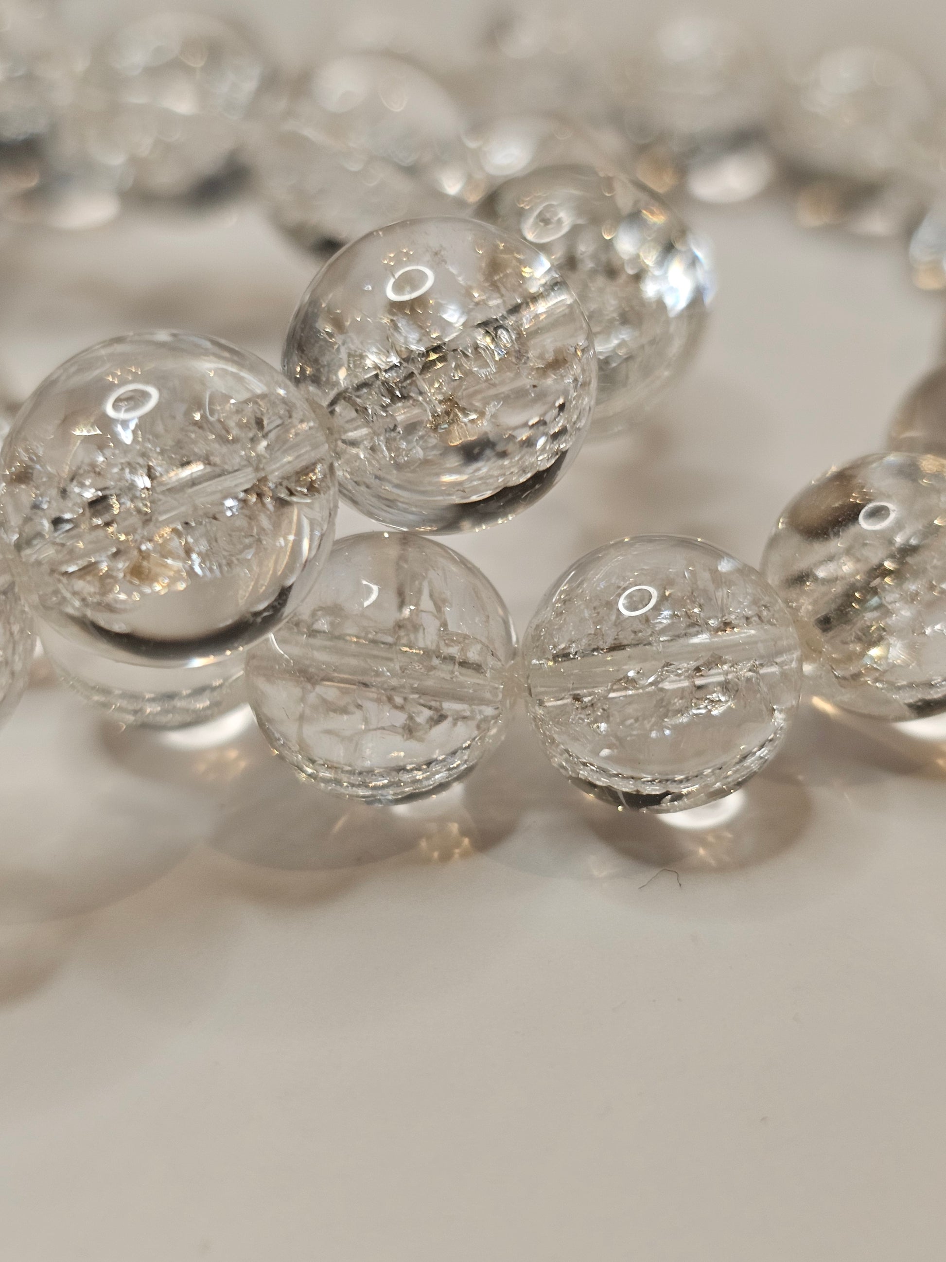 This clear crackle Quartz bracelet is expertly crafted for both style and healing benefits. Made from natural clear crackle Quartz, this bracelet promotes clarity of mind and positive energy. The perfect accessory for anyone seeking balance and inner peace.