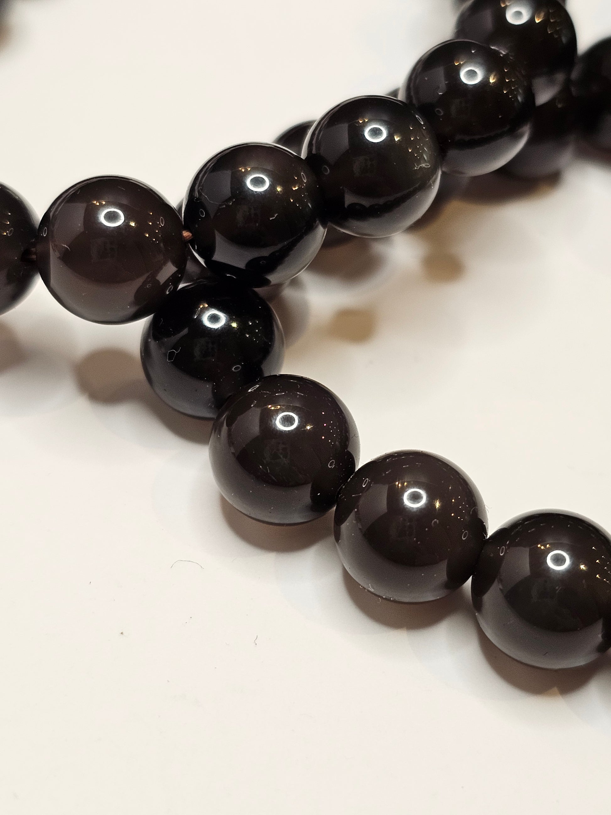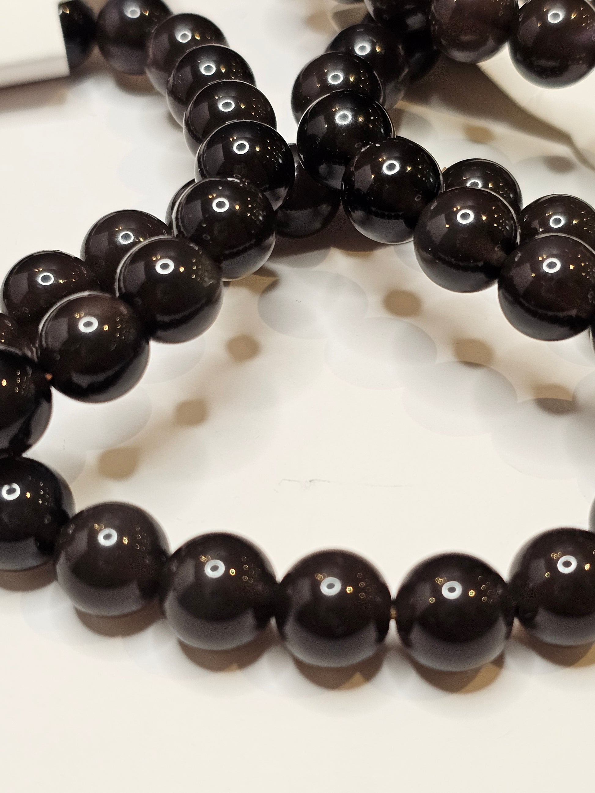 Crafted from striking ice obsidian, this bracelet combines natural volcanic glass with a translucent, icy sheen. Known for its grounding properties, ice obsidian supports emotional clarity and protection. Its sleek, polished beads offer a sophisticated look suitable for both casual and formal wear, making it an ideal accessory for those seeking balance and style in one piece.