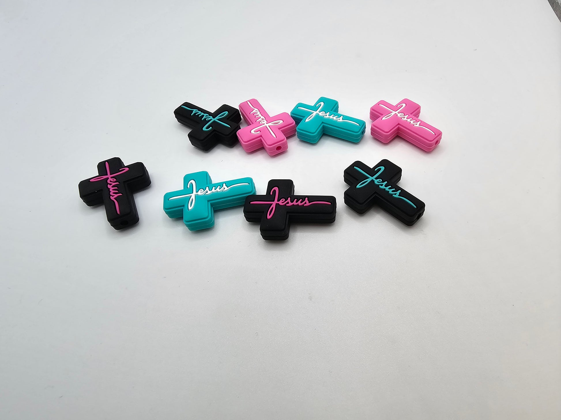 Keychain made with silicone beads and a silicone cross.