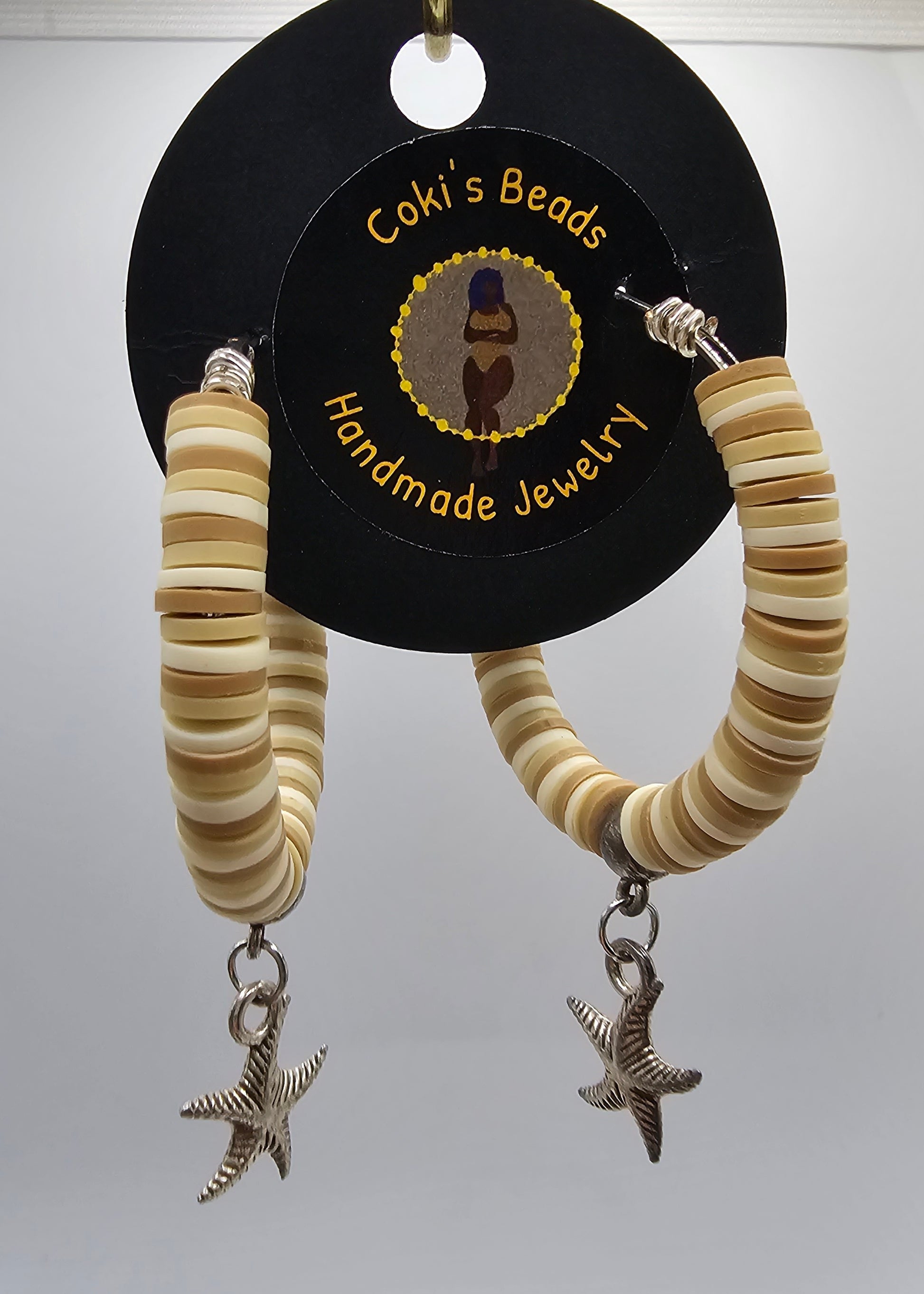 Polymer clay discs in beige/cream/liggt brown with silver tone starfish charm