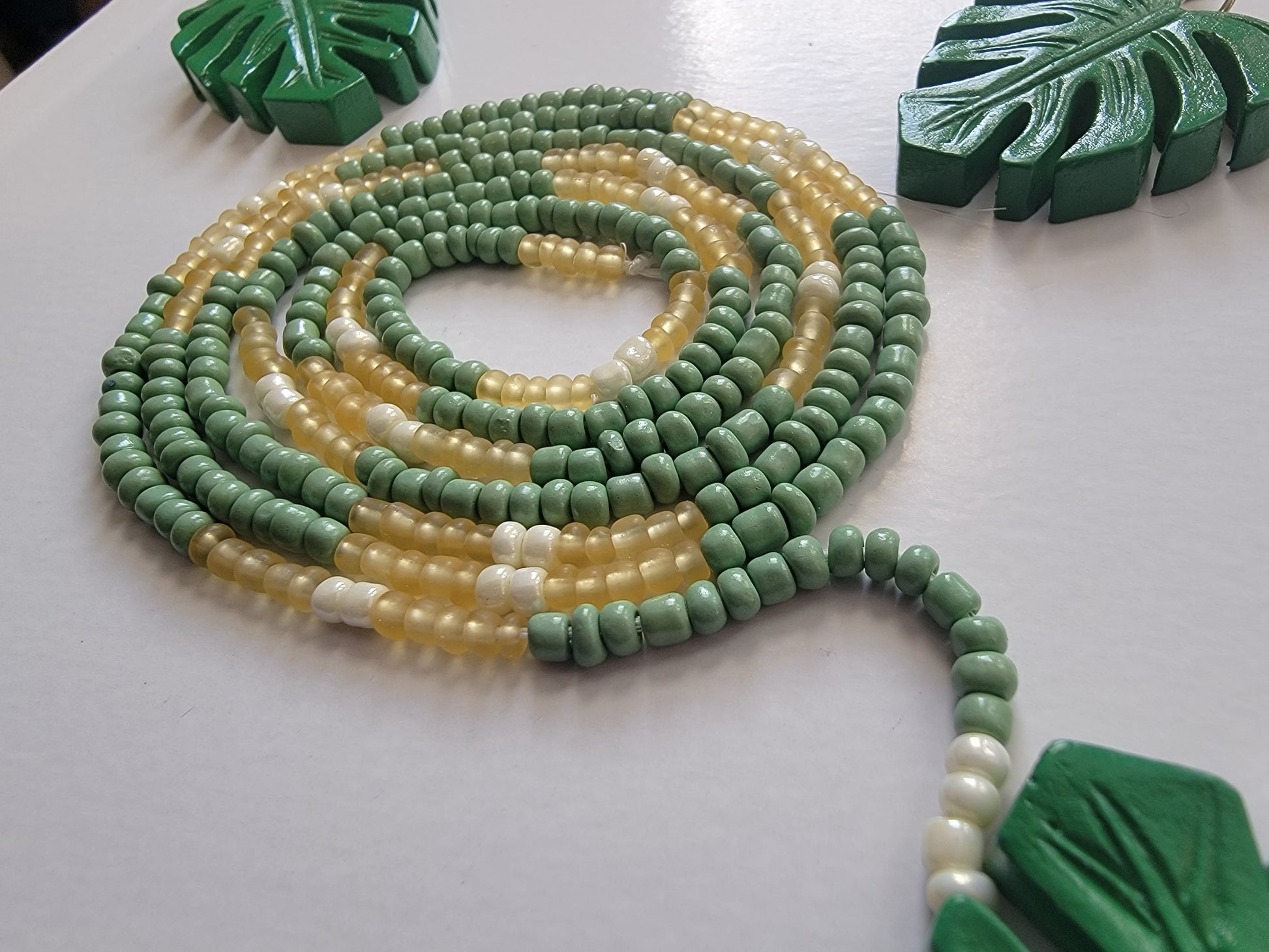 Sizing/Fit: size on your waist where comfortable, remove any excess beads, tie both ends together and trim thread