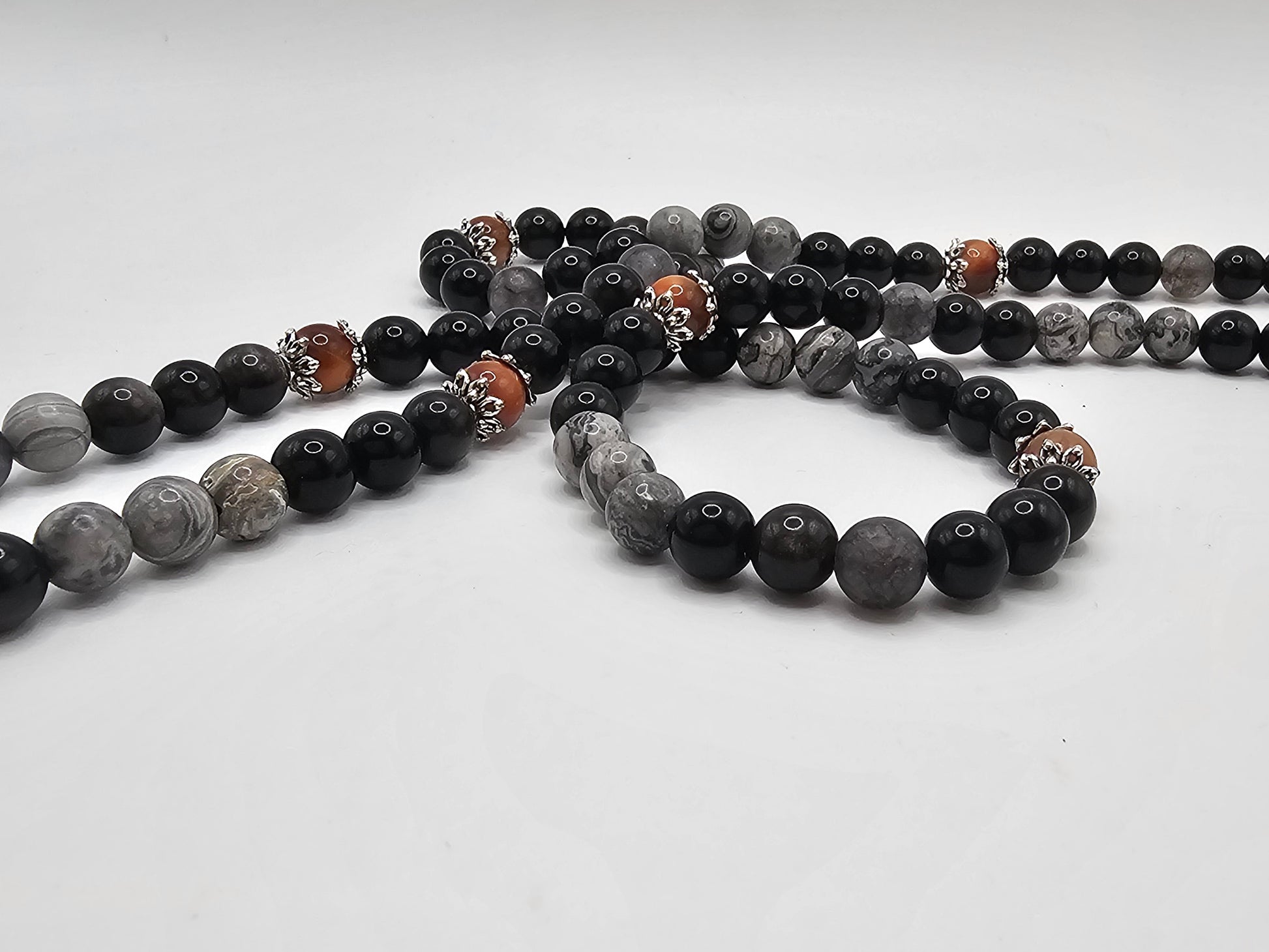 Onyx, Sun Tiger's Eye, Matte Map Stone Jasper, Frosted Charcoal Jade