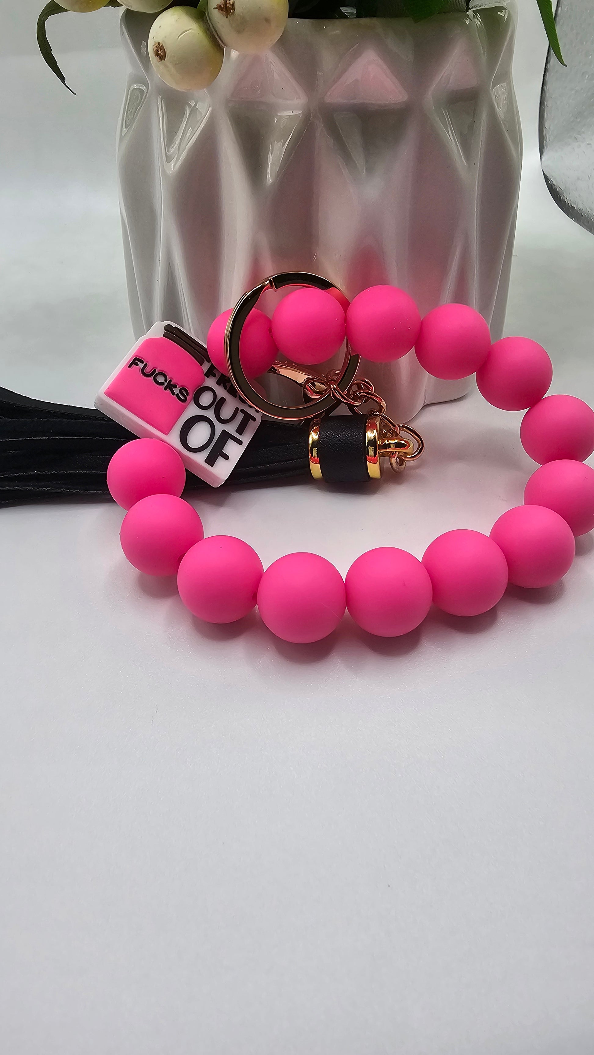 Fresh out of F@$KS silicone beaded wristlet keychain with purple leather tassle.