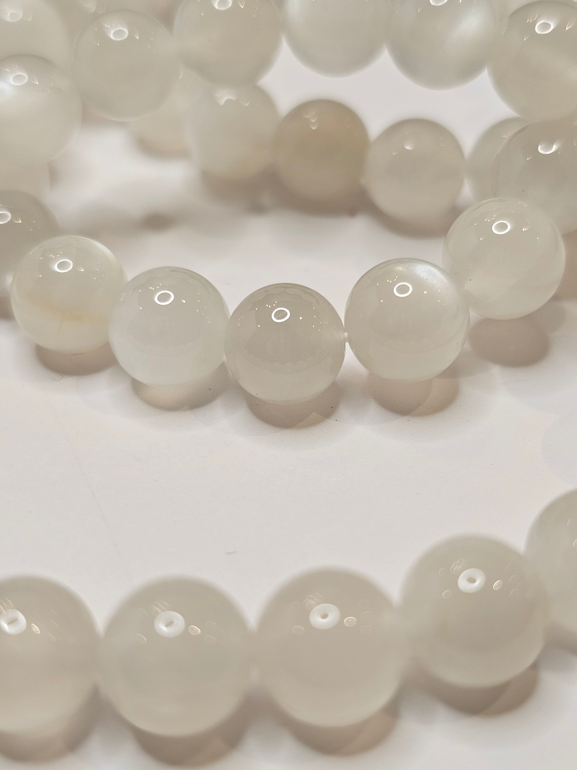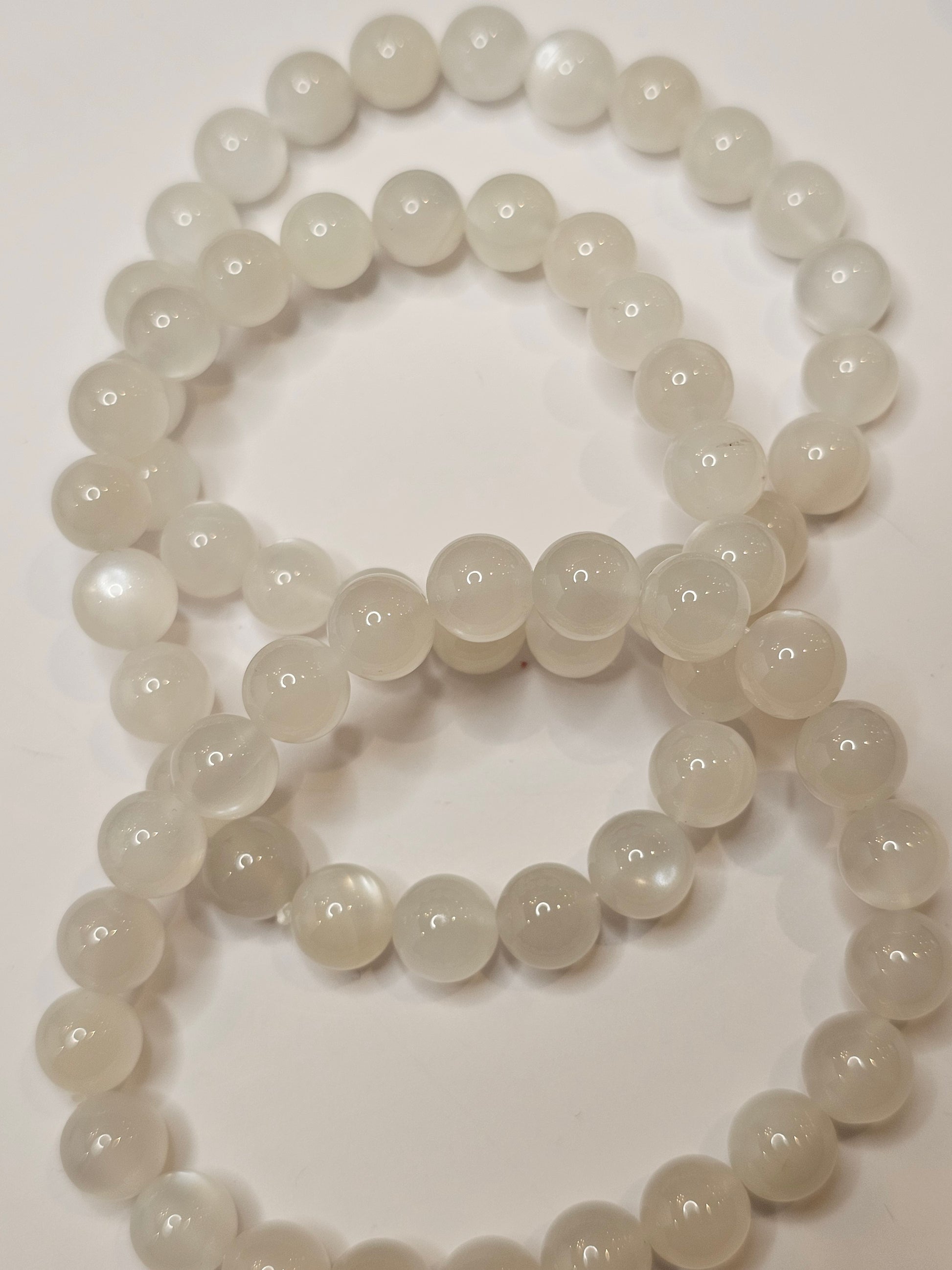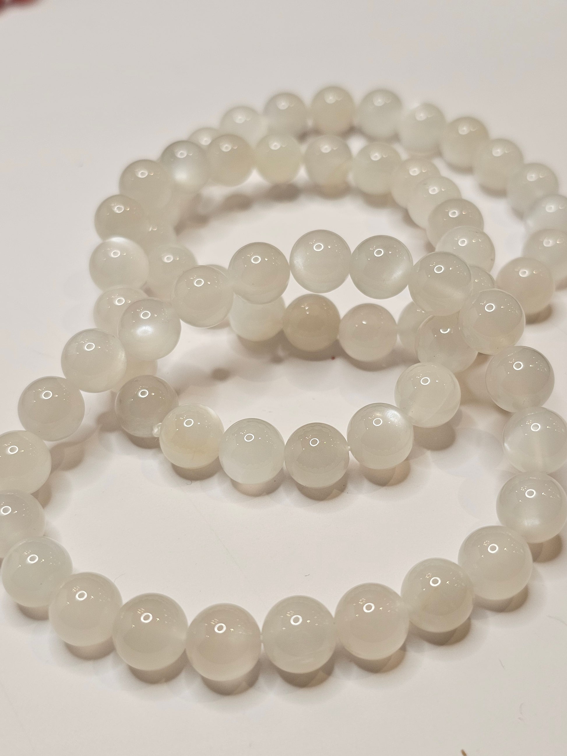 This White Moonstone bracelet is expertly crafted with genuine white moonstone. Known for its calming and soothing properties, this gemstone is said to promote emotional balance and inner peace. Enhance your well-being with the natural benefits of White Moonstone.