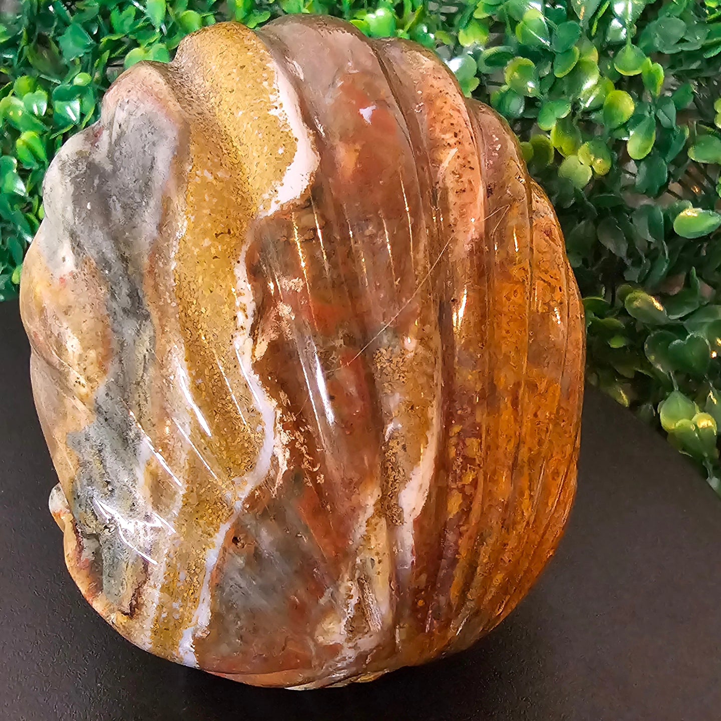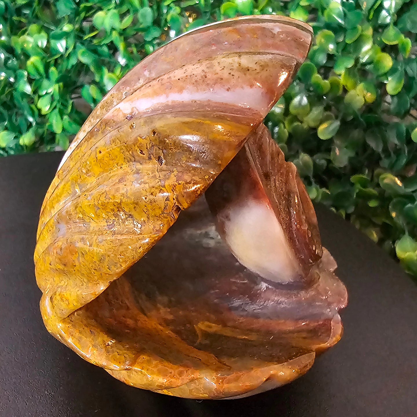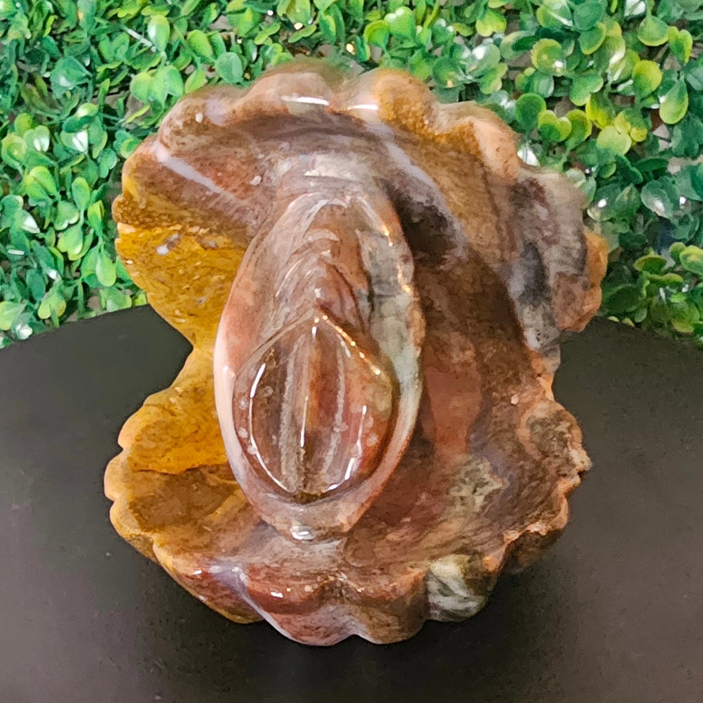 Discover the natural beauty and positive energy of the Yoni Clam! This amazing ocean jasper carving resembles the feminine vulva, making it a unique and empowering addition to your collection. Embrace your inner goddess and bring some playful energy into your space with the Yoni Clam.